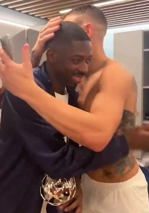 賽后回到更衣室,巴黎球員唱歌跳舞,祝賀登貝萊獲得MVP。