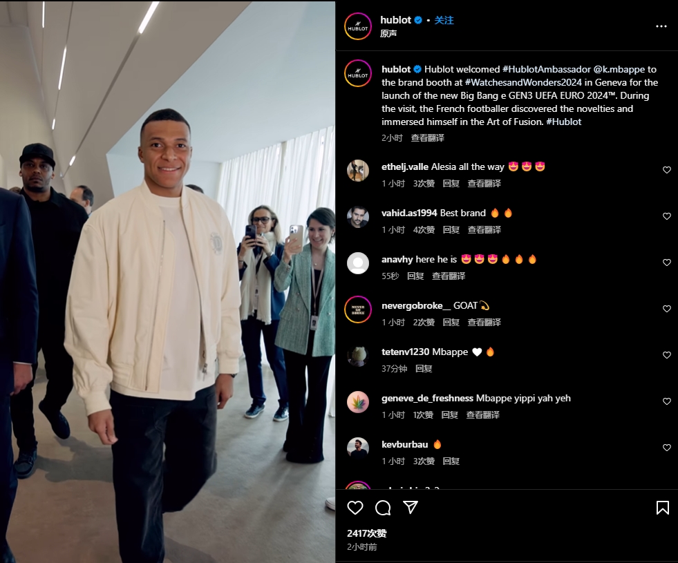 作為宇航手表的品牌大使。姆巴佩被邀請(qǐng)參加瑞士手表展。法國(guó)前鋒在鏡頭前微笑,但姆巴佩沒(méi)有發(fā)表任何評(píng)論,因?yàn)樗诒荣愔辛钊耸谋憩F(xiàn)。